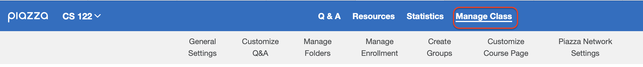 To add instructors directly to the course, please click on Manage Class > Manage Enrollment.