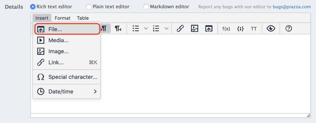 Note: You can also embed a video (e.g. Youtube and Vimeo), insert an image, or a link.