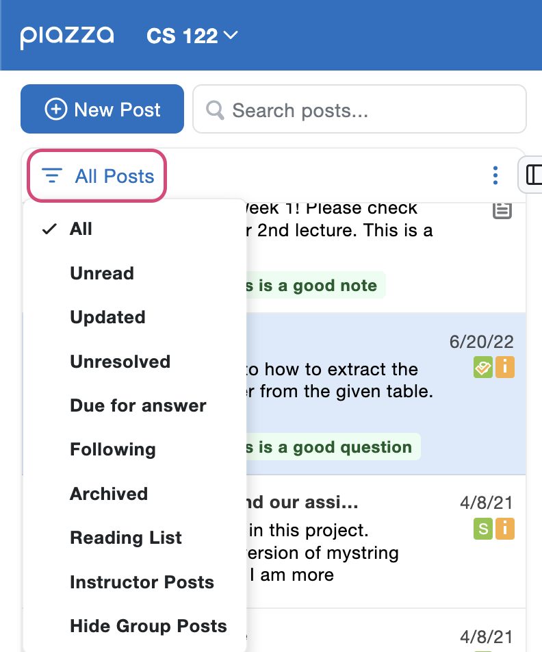 Additionally, the döner icon above your Q&A feed allows you to filter your feed to view unread posts, recently updated posts, and more.